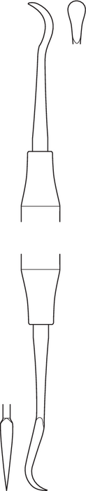 Scaler, supragingival, acc. to Cumine, figure 33, width at the top 3.7 mm, width at the bottom 2.6 mm, solid handle, Ø 8 mm, length 17.5 cm