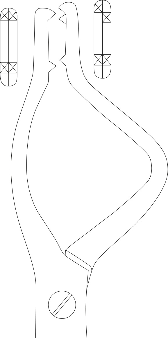 Disimpaction forceps, acc. to Tessier, for children, left, total length 23 cm