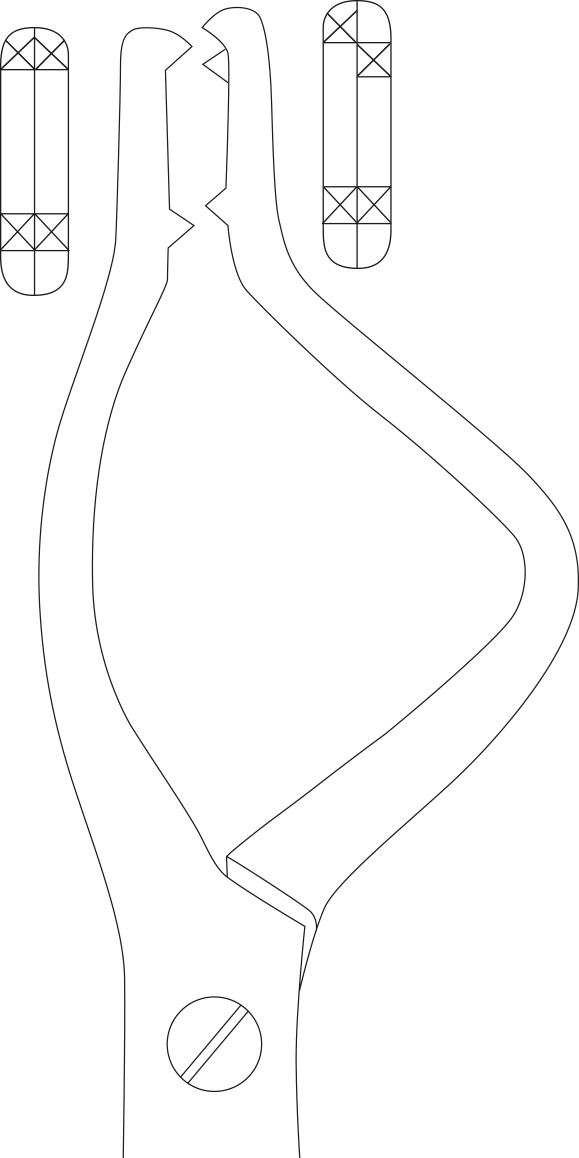 Disimpaction forceps, acc. to Tessier, for adults, left, total length 23 cm