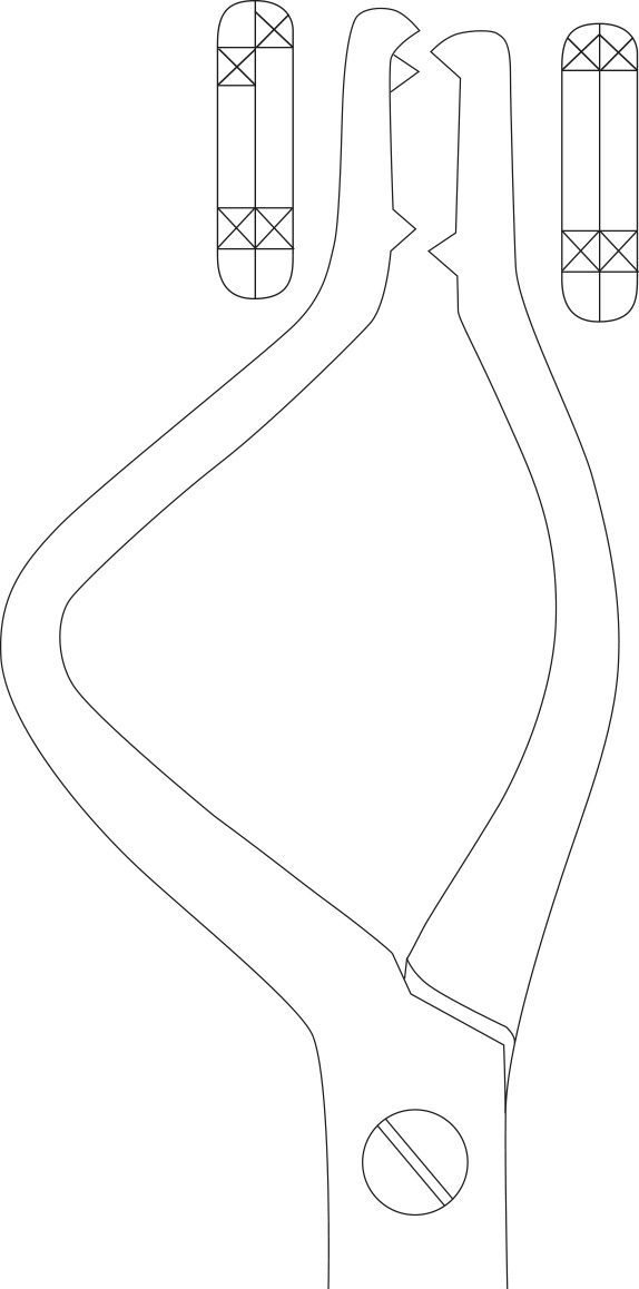 Disimpaction forceps, acc. to Tessier, for adults, right, total length 23 cm