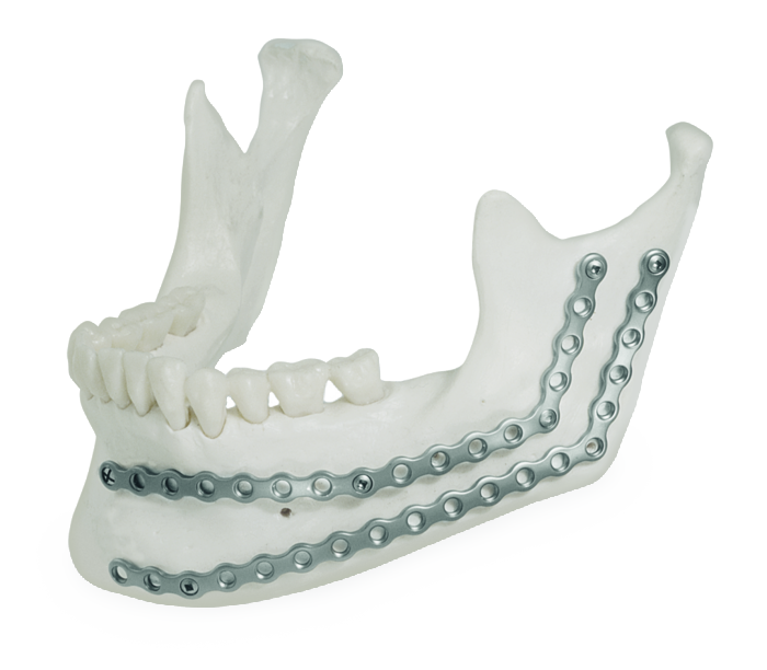 LevelOne Fixation, Smart Shape plate, 2.3 mm, plate profile 1.5 mm, 19-hole, ramus bottom left