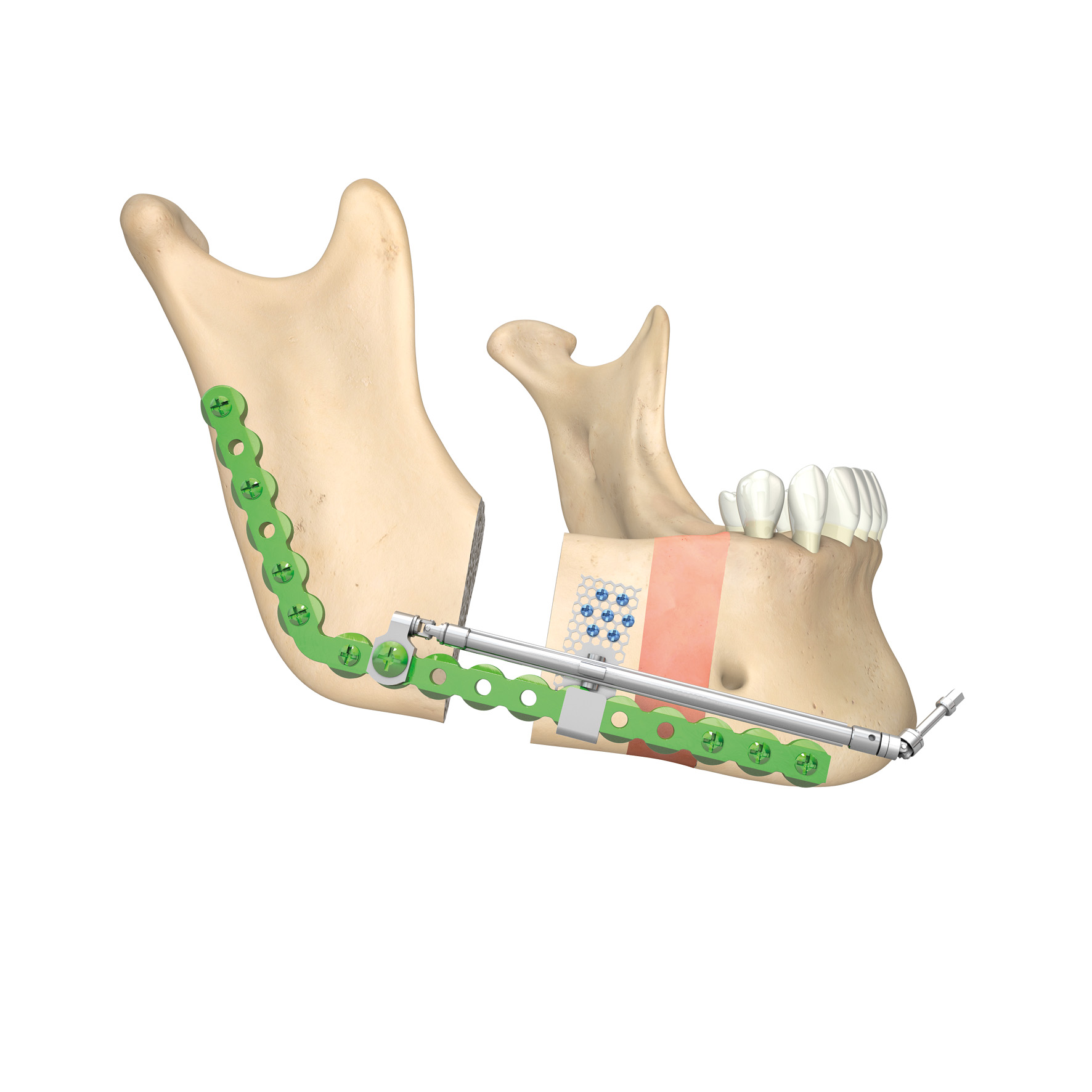 Herford Transport Distractor, without activator, distraction length 60 mm, left, including 1x Centre Drive® fixation screw 2.7 x 6 mm for ThreadLock reconstruction plates, 1x maxDrive® fixation screw 2.7 x 6 mm for ThreadLock reconstruction plates