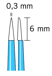 Bipolar forceps, straight, pointed, tip width 0.3 mm, length 8.5 cm