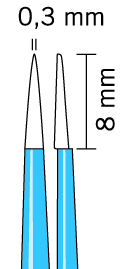 Bipolar forceps, straight, pointed, tip width 0.3 mm, length 22 cm