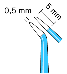 Bipolar forceps, angled, tip width 0.5 mm, length 20 cm