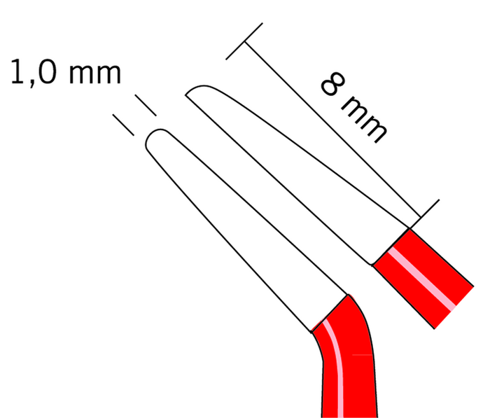 Bipolar forceps, angled, blunt, tip width 1.0 mm, length 20 cm
