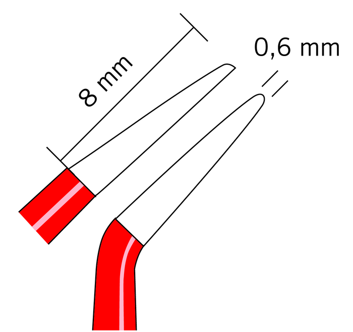 Bipolar forceps, bayonet-shaped, downward-bent, blunt, tip width 1.0 mm, length 23 cm