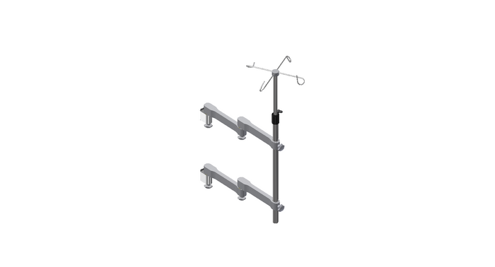 Infusion stand for mounting on console, two mounting points, 2 x double arm, height-adjustable, stainless steel hook, Ø 25 mm, height 800 mm, material stainless steel
