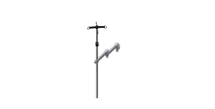Infusion stand for mounting on console, one mounting point, double arm, height-adjustable, plastic hook, Ø 25 mm, height 600 mm, material stainless steel
