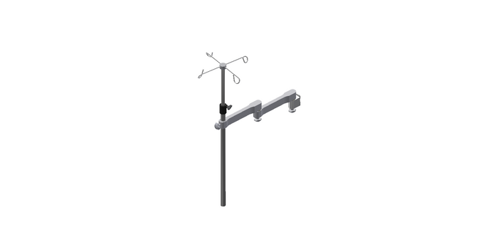 Infusion stand for mounting on console, one mounting point, double arm, height-adjustable, stainless steel hook, Ø 25 mm, height 1200 mm, material stainless steel