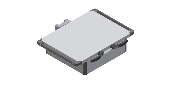 Drawer with DIN standard rails and handles, mounting on console rail, length 770 mm, width 440 mm, height 150 mm, material painted steel