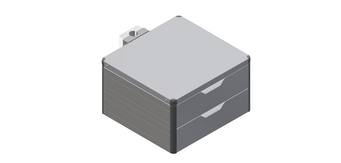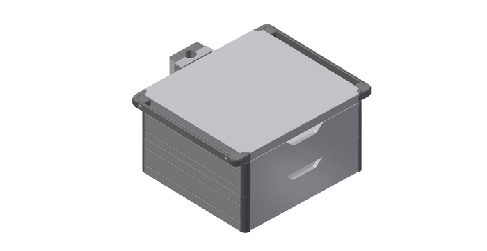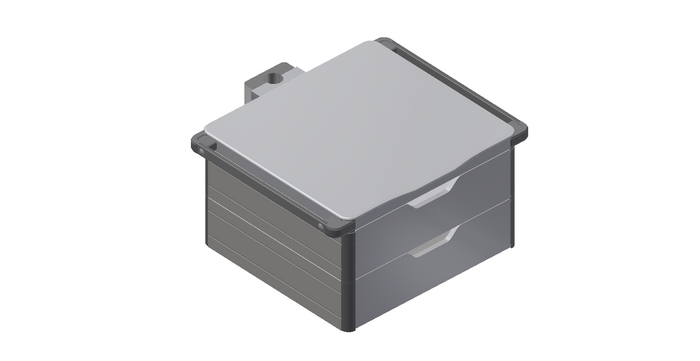 Double drawer with DIN standard rails, mounting on multifunctional rack Ø 38 mm, length 630 mm, width 440 mm, height 270 mm, material painted steel