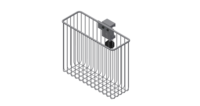 Supply basket for mounting on DIN standard rail, length 250 mm, height 200 mm, width 90 mm, material stainless steel, epoxy powder coating